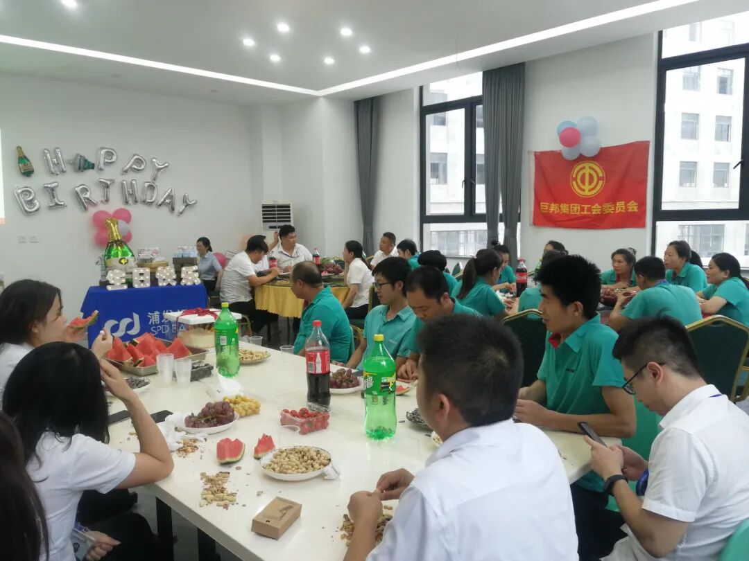 7月19日下午,巨邦集团有限公司工会委员会与浦发银行乐清支行联合一起为6月过生日的同事举办了一场其乐融融的员工集体生日会。